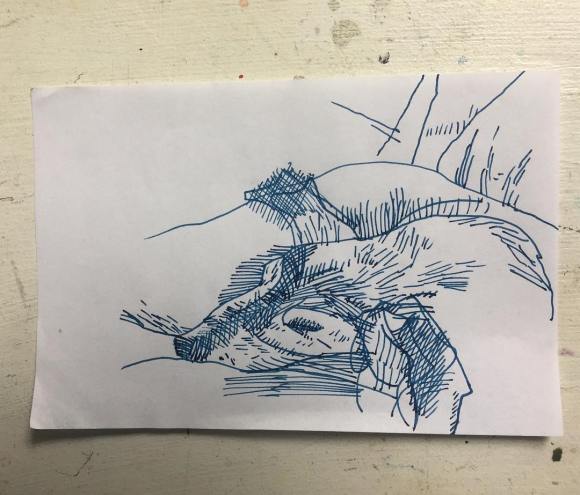 #drawing (#Biscuit #asleep) #pen and #ink on #crappy #paper. #dog #d-o-g #sketch #hatch #draw