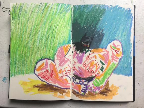 #drawing. #anxiety #batman. @caran_dache #neopastel in @stillmanandbirn #gamma #sketchbook. #art #color #paint #draw #space