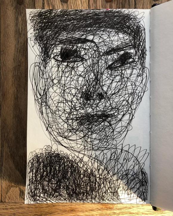 #drawing. #Rimbaud. #ink #on @stillmanandbirn #gamma #sketchbook. #paper #art #line #mass #tone #color #portrait #poet #poetry